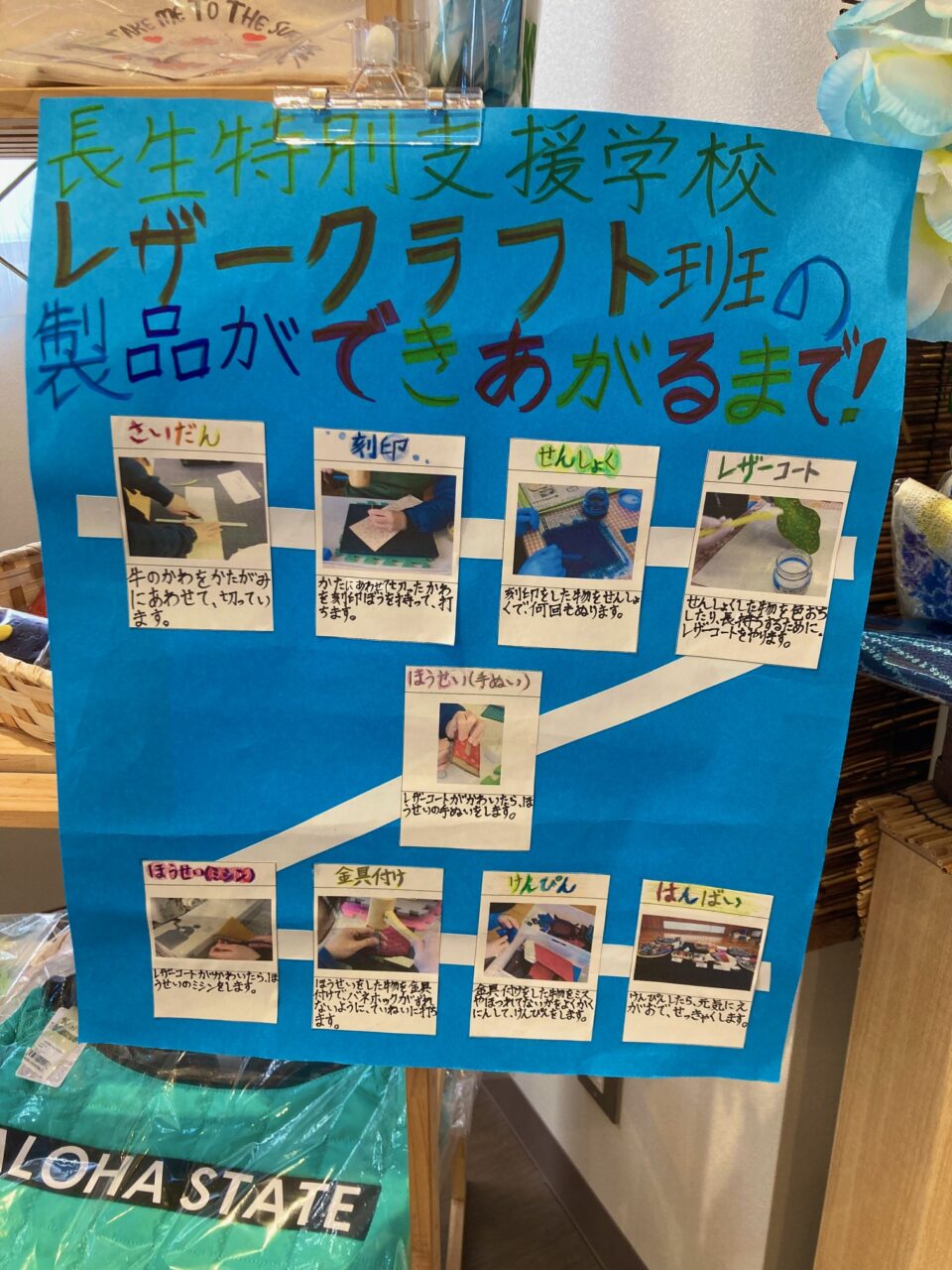 長生特別支援学校の生徒さん作「レザークラフト製品」を販売しています♪
